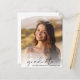 Elegante convite à festa de formatura, com orçamento favorável, que inclui a fotografia do formando sobreposta a um "formando" numa escrita moderna e o seu nome e ano de aula numa fotografia simples. No verso, adicione os detalhes da parte formando.