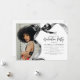 Elevem sua celebração de formatura com nossos convites para formatura em chic e tendências. Desenhando uma sofisticada fita preta de aquarela amarrada em um arco, e sua foto favorita, estes convida eloquentemente a fundir estilo e elegância. Nossa característica de personalização fácil nos dedos faz com que seja uma alegria convidar seus entes queridos. Além disso, a opção de download digital está disponível para aqueles que adoram uma boa combinação de modernos e tradicionais.