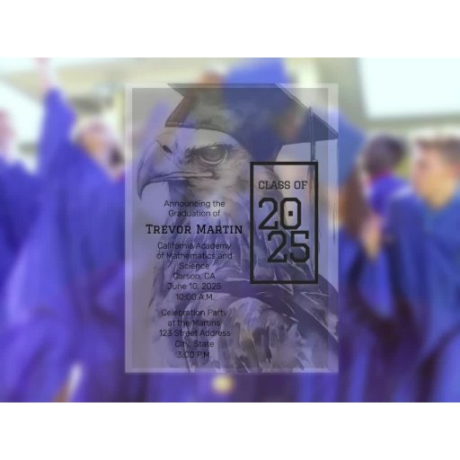 Melhore seus anúncios de graduação com esses convites exclusivos. Basta adicionar o monograma, a foto e o ano de aula do formando na frente e incluir os detalhes da sua cerimônia de graduação e festa de comemoração (nas costas). A parte traseira apresenta o design de formando de de águia personalizado. Modelo fácil de usar. Cor preta com design de formando de águia. Mostrada na orientação horizontal (ou paisagem). Use a modelo para personalizar seus novos convites de graduação.