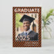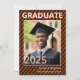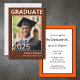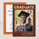 Cores escolares em faixas diagonais laranja e Convite para Graduação de Fotos. Adicione sua foto do formando e informações sobre o início. Este convite diz: Frente (todos editáveis) Formando 2025 do Name School Back (todos editáveis) Junte-se a Nós para Comemorar a Graduação de... Informações do evento de nome