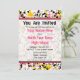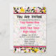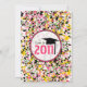 Um convite de graduação único com um fundo de plástico preto, amarelo, verde e rosa com cor rosa quente. Texto rosa e preto. Personalize com detalhes do seu próprio evento. O lado oposto apresenta design de tela de tinta sólida. O texto em forma de círculo cor-de-rosa dentro diz "Classe de 2011" em rosa e preto com uma ilustração de um boné de formatura preto. Excelente para o formando da escola de arte. Procure itens correspondentes na seção "compro de graduação" da loja de Escolas Rosa.