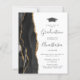 Este convite de festa de formatura da tendência 2025 apresenta uma imagem de aquarela do geode de agata preto com realces de brilho dourado falsos. A palavra "Graduação" e o primeiro nome do formando aparecem em um roteiro elegante de cinza de carvão em fundo branco, juntamente com um boné de conselho de argamassa e detalhes de festas em sans serif e itálico. Substitua facilmente a imagem de amostra na parte traseira por uma foto vertical do formando.
