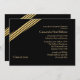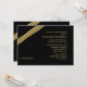Um convite simples, mas sofisticado, com uma reviravolta de ouro e listras pretas, virado à esquina contra um fundo preto.O cartão é fácil de personalizar com seu texto, fonte, cor da fonte e escolha de seis tipos de papel.