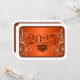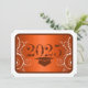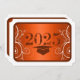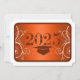 Um cartão de formatura em laranja e branco convidando os apaixonados a honrar um formando maravilhoso em seu dia especial de celebração.
