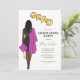 Mulher-americana africana, rosa-Festa de formatura, convidando mulher a retratar desenhando vestido preto, boné e vestido cor-de-rosa, cabelo longo e escuro. As letras FORMANDO em balões faux gold foil style. Personalize com detalhes de festa de formatura, ano de aula e nome da escola. Envie-me uma mensagem para os itens correspondentes.