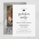 Esse convite de festa de formatura é perfeito para o segundo grau ou formando universitário em busca de um simples roteiro moderno preto-e-branco com uma foto de cheio no verso que dá a ilusão de dois retratos. Personalize o seu com todos os detalhes da festa de formando, classe de informações e adicione um retrato favorito da sessão de fotos de graduação. Desenhado pela Simple Desert Design Studios para Zazzle. Envie-nos uma mensagem para personalizar este ou qualquer dos nossos designs para ajustado das suas necessidades.