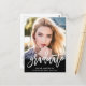 um design de placa de sobreposição de fotos com um texto personalizado de script de foto e pincel branco. Sinta-se livre para alterar os recursos de imagem e texto.