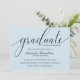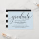 Parabéns pela sua graduação! Convide convidados com estes elegantes e modernos convites azuis com "formando" em caligrafia manuscrita. Um elegante padrão preto e branco completa a placa no verso Para obter ajuda ou solicitação personalizada, entre em contato conosco através da loja ou escreva um email em citronelladesign@gmail.com O fundo preto pode ser facilmente alterado usando o botão "personalizá-lo"