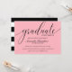 Parabéns pela sua graduação! Convide convidados com estes elegantes e modernos convites cor-de-rosa com "formando" em caligrafia manuscrita. Um elegante padrão preto e branco completa a placa no verso Para obter ajuda ou solicitação personalizada, entre em contato conosco através da loja ou escreva um email em citronelladesign@gmail.com O fundo preto pode ser facilmente alterado usando o botão "personalizá-lo"