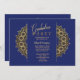 Posicione sua foto de graduação ao lado dessa safra, colchete ornamental com fundo azul profundo. <a href='http://www.freepik.com/free-vector/vintage-invitation-card_841974.htm'>Concebida por Freepik</a>. <br/>() O cartão é fácil de personalizar com seu texto, fonte, cor da fonte e escolha de seis tipos de papel.<br/>() Não exatamente o que você está procurando? Todos os nossos produtos podem ser personalizados para atender às suas necessidades sem custos adicionais.<br/>() Basta entrar em contato conosco em heartfelthelper@gmail.com.<br/>() produtos de coordenação disponíveis: Convite para graduação de fotos Douradas em suporte