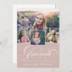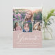 Um convite moderno para a graduação, com a palavra "formando" na frente, em caligrafia por na moda, além de 4 fotos de seu mais velho favorito. Adicione seus próprios detalhes pessoais de celebração às costas. Esta é a versão rosa esbranquiçada.
