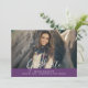 Anúncio de Graduação Elegante Simples com um design simples e elegante em roxo. Adicione uma foto e detalhes de graduação para personalizar. A cor de fundo no verso do convite pode ser alterada para complementar a foto ou para adicionar uma cor escolar.