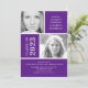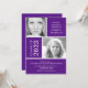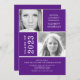 Convite/anúncio da classe moderna de 2018 para graduação em fotos em roxo e branco.