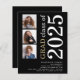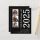 Um valor para o alternativo do ORÇAMENTO em tamanho menor de 4,5 x 5,6" de semirbrilho de 110 lbs, que é de espessura semelhante a um cartão postal (no entanto, não é adequado para uso como cartão postal). POR FAVOR, OBSERVE QUE HÁ UM convite por folha. Orçamento 3 Fotografia Negrito 2025 Convite para Graduação em Preto. Uma tipografia moderna de na moda e design de fotos múltiplas, com texto grande girado e à direita em preto e ouro. Personalize facilmente o resto do texto e substitua as fotos nos modelos por sua própria orientação quadrada.