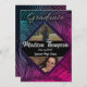 Convite à graduação tropical colorida vibrante para festa de formando. A bela palma tropical deixa design na frente e atrás com opção de foto personalizada.