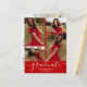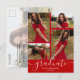 Adicione suas fotos favoritas a estes cartões postais de convite para festas de formatura com as palavras formando e classe de em caracteres quicos em um fundo vermelho de cor da escola escarlate na frente e seus detalhes no verso. Mais designs e cores feitas em nossa loja.