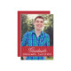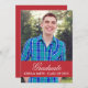 Simples anúncio e convite do cartão com fotos de graduação moderno com uma banda vermelha na frente. Personalize o anúncio de graduação com sua foto, nome e detalhes de graduação no verso. Para alterar as cores da fonte e da fonte, clique no botão "Personalizar" abaixo da imagem do produto. Aqui você também pode alterar a cor de fundo no verso do convite.