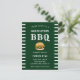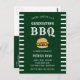 Anuncie sua formatura e convide seus hóspedes em estilo com este convite de festas de Formando de cartão-postal temido para este CHURRASCO. Esta design moderna apresenta uma tipografia branca, realçada em verde por uma ilustração de um hambúrguer de queijo com as obras. Nas laterais há uma borda verde e branca listrada. A parte de trás do cartão tem os detalhes da sua graduação acentuados por um boné de formatura branco. Parabéns pela sua formatura! Desenhada pela artista Susan Coffey.
