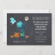 Um convite legal para a festa de Halloween. Uma legal cena de halloween assustadora. Um fantasma azul gelado flutua no ar. Uma velha árvore morto tem uma coruja sentada em seus galhos e um morcego pendurado de cabeça para baixo. Uma mão está ascensão de uma sepultura antiga. Os morcegos estão voando ao redor de um cheio luando. Alguns doces estão cheios de uma abóbora de dentro de brim com milho doce espalhado. Um crânio paira no ar. Tudo em um fundo preto de quadro negro. Personalize/personalize facilmente com os detalhes do seu partido.