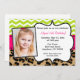 Convide seus convidados para sua festa de aniversário de uma forma divertida com este convite para fotos de impressão de pau-rosa, chocalho e leopardo.