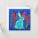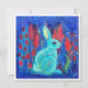 Este é "Mint Bunny" - um impressão da minha pintura acrílica original, com um pequeno coelho verde de menta cercado por flores vermelhas e tons texturizados de azul. Veja mais impressões e pinturas originais no ArtistMelanieTaylor.com