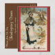Imagem de Ação de Graças com ilustração vintage apresentando uma mulher peregrina em um campo nevado com o texto "Saudações do Dia de Ação de Graças."