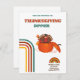 Um convite de jantar de Ação de Graças personalizável com um peru fofo usando um chapéu de peregrino em uma panela de ensopado de abóbora. Você pode mudar as cores e o texto é fácil de alterar.