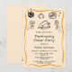 Convite de Jantar de Ação de Graças Desenhado à Mão em Laranja Retrô – Modelo de Festa Divertido e Caprichoso
