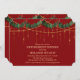 Convite para Festa de Natal e Jantar de Aposentadoria com Guirlanda de Azevinho e Luzes de Corda Douradas