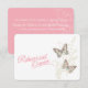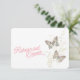 Convite de jantar de ensaio de casamento com belas borboletas gráficas em ambos os lados em flores silvestres estilizadas em redemoinho. Edite este convite com suas palavras. Convite simples, porém romântico, em tons de rosa, branco, creme, marrom e azul turquesa. Arte e design originais de Sarah Trett.