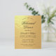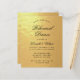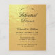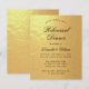 Um convite para jantar de ensaio econômico em preto e dourado com apenas texto preto em um fundo de folha de ouro falso. As palavras "Jantar de Ensaio" e o nome estão escritos em uma elegante caligrafia.