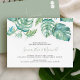 Convide os convidados para o jantar de ensaio com meu convite de cartão postal tropical. O design apresenta minhas folhas de palmeira monstera originais em aquarela em tons de verde, turquesa e azul. Seus nomes são definidos em uma tipografia moderna de letra manuscrita. O verso do cartão é na cor verde sage complementar com espaço para o endereço do convidado e detalhes adicionais. Perfeito para pecadores no ensaio, casamentos de destino caribenho ou o que você quiser. Para ver o conjunto de convites correspondente visite www.zazzle.com/dotellabelle