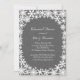 Renda branca, flocos de neve de inverno decoram a borda deste convite de jantar de ensaios cinza, que tem um fundo com aparência de linho texturizado. Este convite é mostrado no papel mate, no entanto, eu recomendo o papel de linho para realçar a aparência e sensação de linho.