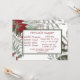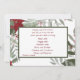 Um belo quadro vermelho de poinsettia ao redor do texto convidando-o para um jantar de Natal de Potluck. O texto frontal é emoldurado em um retângulo verde com texto vermelho. O verso tem um quadro verde com texto vermelho para leitura clara.