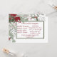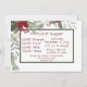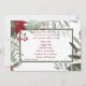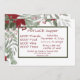 Um belo quadro vermelho de poinsettia ao redor do texto convidando-o para um jantar de Natal de Potluck. O texto frontal é emoldurado em um retângulo verde com texto vermelho. O verso tem um quadro verde com texto vermelho para leitura clara.