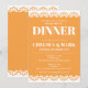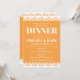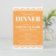 Um convite para jantar de ensaio no estilo papel picado com um fundo laranja festivo.