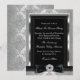 Jantar corporativo formal de gala. Use para qualquer evento, abertura ou apresentação para o seu negócio, jantar de arrecadação de fundos, festa de trabalho. Personalize para alterar ou adicionar detalhes. Elegante laço de damasco e jóia preto e prata. Por favor, note: Todas as imagens planas!