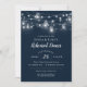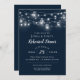 Barato personalizado de ensaio de casamento impresso janta convites com um modelo fácil de usar para personalização. Este design de chic rústico apresenta cadeias de luzes brilhantes de cordas e frascos de pedras em um fundo azul marinho escuro. Personalize o convite com os detalhes do seu janto de ensaio ou personalize o texto a ser usado para qualquer evento. Use as ferramentas de design para escolher qualquer cor de fundo, adicionar fotos e personalizar as fontes e cores do texto para fazer um design único para a sua festa de ensaio de casamento.