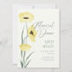 Estes simples cartões de ensaio de casamento de 5" x 7" apresentam duas papoilas aquáticas amarelas de borboleta com a saudação, "Janto de ensaio" em cinzas com marcadores para os nomes do casal de casamento, localização jantada, endereço juntamente com o tempo de janto e ensaio. Adicione seu site de casamento para criar seu próprio código QR no verso.