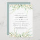 Elegante ensaio de botânica a aquarela jantar quadros de convite para o seu ensaio de cerimônia de casamento e jantar detalhes de celebração com uma borda de folhas de aquarela pastel e folhagem em tons legal e claros de verde.