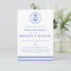 NewParkLane - Convite para Janto de ensaio náutico personalizado, com uma âncora de aquarela azul em um quadro circular, contendo seus nomes e data do casamento. Na parte de trás e na parte inferior do convite, um padrão estriado azul marinho. Uma design moderna e divertida para uma celebração náutica de casamento temida! Personalize com seus nomes, data de casamento ou outras informações para um design personalizado. Todo estilo de texto, cores, tamanhos podem ser modificados para ajustado das suas necessidades. Verifique se há itens correspondentes nesta coleção. Você tem desejos pessoais específicos de design? Sinta-se livre para me contactar!