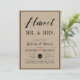 Este moderno convite de janto de ensaio de casamento, com um roteiro de na moda, um coração vermelho, com um fundo texturizado de papel kraft.