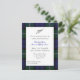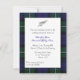 O convite tradicional para o janto do ensaio de casamento da xadrez de tartã escocesa, feito com o adorável tartan azul e verde do clã Forbes. Uma área de texto de cor branca, no meio, tem um tom de prata exibido no topo. O texto está preto e azul e é totalmente personalizável para atender às suas necessidades de casamento. Personalize o texto para atender às suas necessidades.
