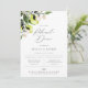 Limões botânicos de cor aquosa elegantes, folhas e arranjo florescente, convite para janto de ensaio. Design de fotografia e tipografia moderna. O plano de fundo apresenta cor verde de floresta de mossy escura sólida.