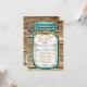 O Janto de ensaio Rustic Country Mason Jar Convoca um sotaque azul em um fundo de madeira estampada para um tema de casamento rústico.