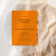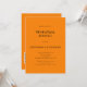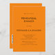 Convite para Janto de ensaio de código QR Laranja de outono moderno e simples. A cor e o tipo da fonte podem ser alterados através do menu de edição. Você também pode alterar as cores do texto e do plano de fundo em ambos os lados, se desejar. Adicione seu código QR ao seu site de casamento no verso como uma opção conveniente para seus convidados para RSVP. Os códigos QR podem ser criados gratuitamente on-line. Basta pesquisar "Criador de código QR" e selecionar um dos criadores livres. Você também pode remover o código QR se desejar.