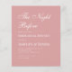 Um convite simples e minimalista para o janto de ensaio de rosa empoeirado. Tem apenas um texto branco sobre fundo poeirento de rosa. O título "A Noite Antes" é escrito em um roteiro caligráfico elegante. O texto fica alinhado.