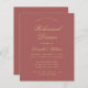Um simples convite de janto de ensaio com uma cor moderna: a rosa de canela. Ele tem apenas ouro texto amarelo sobre fundo rosa de canela. As palavras "Janto de ensaio" e o nome são escritos num guião caligráfico elegante.