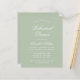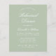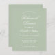 Um simples convite de janto de ensaio com uma cor moderna: sage green. Tem apenas um texto branco sobre fundo verde sábio. As palavras "Janto de ensaio" e o nome são escritos num guião caligráfico elegante.