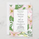Um convite clássico de janto de ensaio floral com lírios cor-de-rosa.